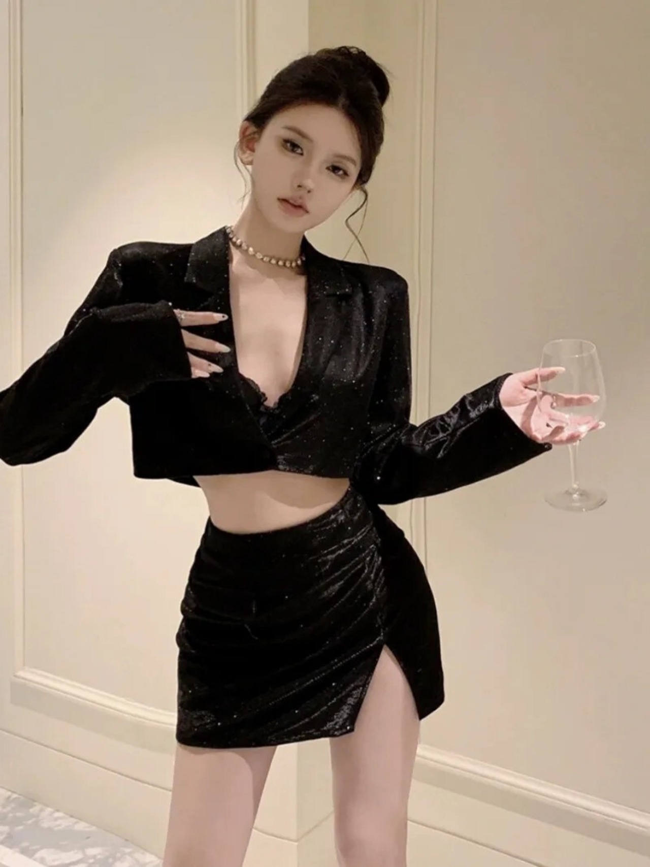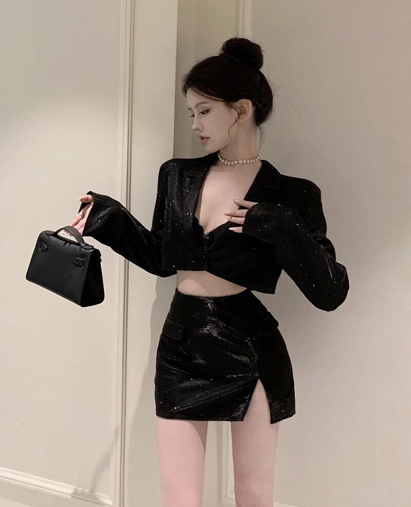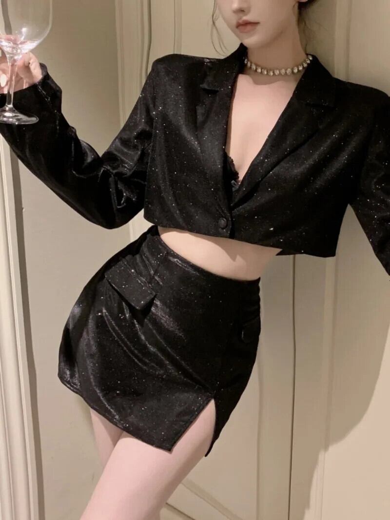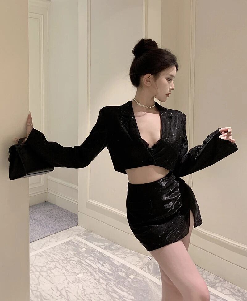 ホットガール純粋セクシースーツ春/夏スリムフィットショートコートスプリットラップヒップミニスカートツーピースセット スプリング 春物 サマー 夏物 ピュア