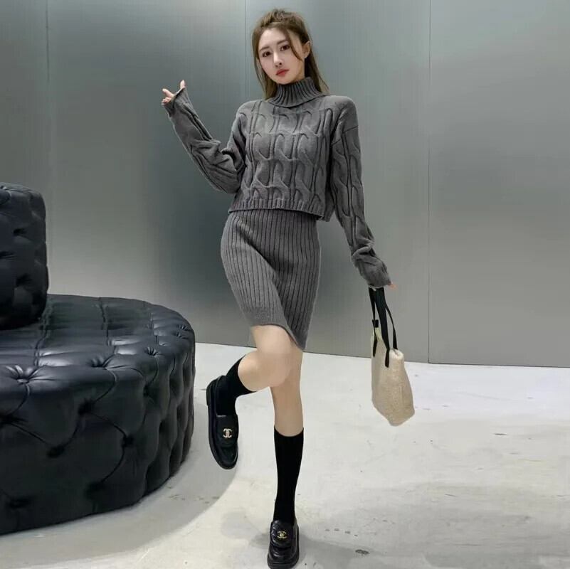 甘いホットガールスーツ春と秋タートルネックルーズツイストセーターウエストミニスカートツーピースセット 大人ガーリー スウィート キュート カジュアル スプリング 春物 オータム 秋物