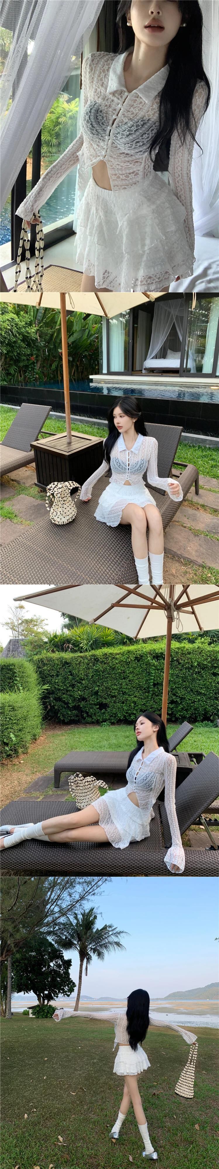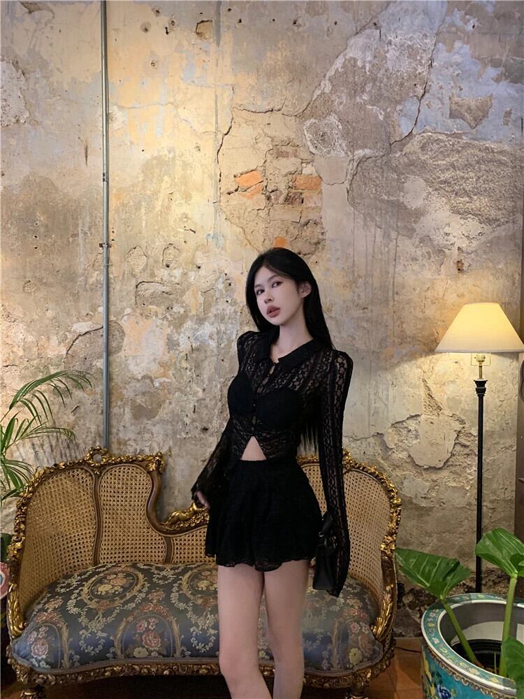 純粋セクシーホットガールスーツ夏レースシャツウエスト A ラインミニスカート 2 点セット サマー 夏物 Aライン