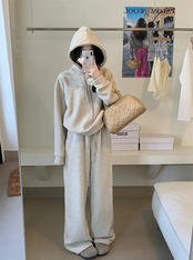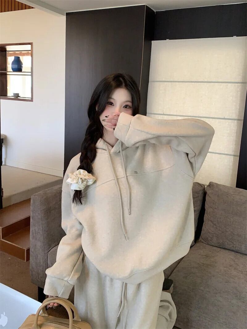 甘いホットガールスポーツスーツ春豪華厚いフード付きセーターワイドレッグパンツ 2 点セット 大人ガーリー スウィート キュート カジュアル スプリング 春物 ワイドパンツ