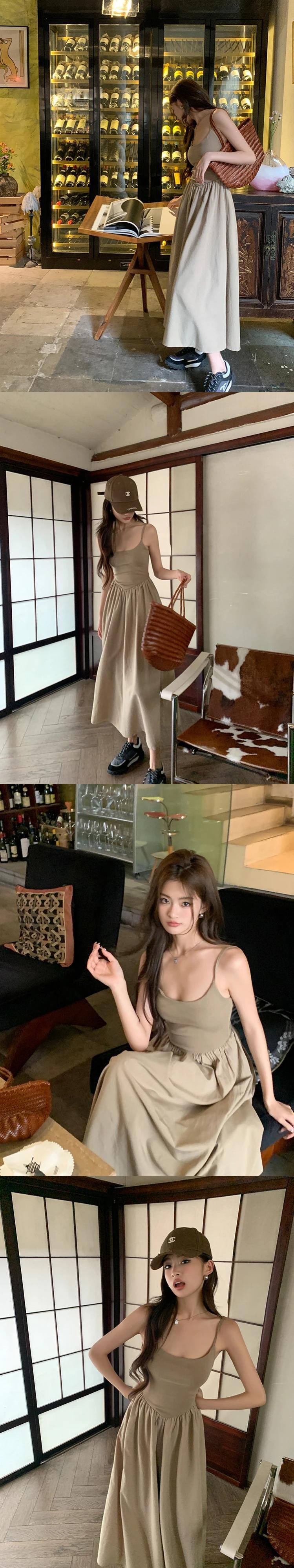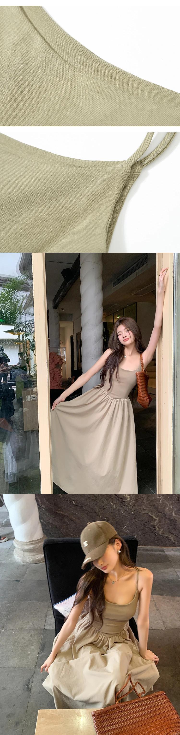 甘いホットガール純粋セクシーキャミソールドレス夏パッチワークスリムフィット A ラインプリーツロングドレス 大人ガーリー スウィート キュート カジュアル サマー 夏物 Aライン ピュア