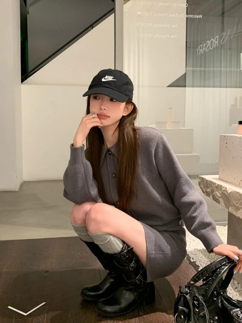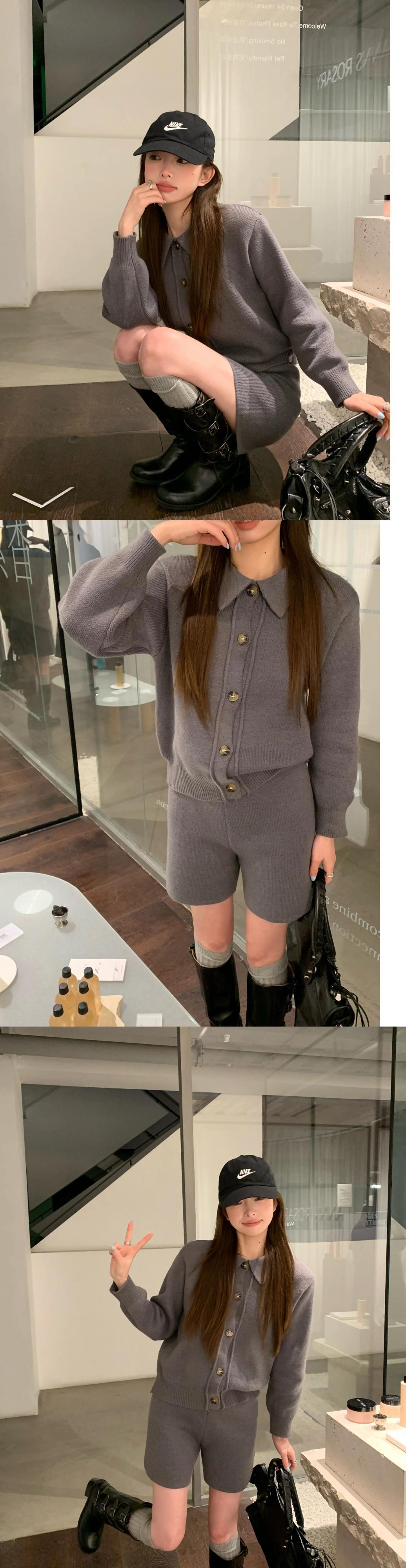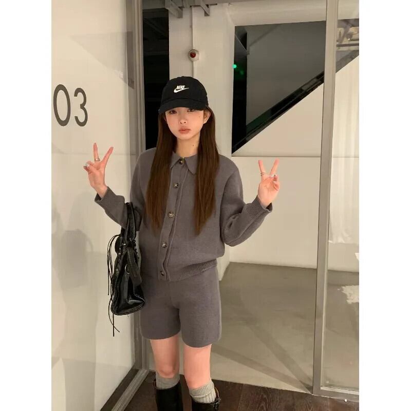 Sweet Hot Girl スーツ レディース 秋冬 ポロネック ニット カーディガン ウエスト ニット ワイドレッグ ショーツ 2 点セット 大人ガーリー スウィート キュート カジュアル オータム 秋物 ウィンター 冬物 ブルマー Oネック ワイドパンツ