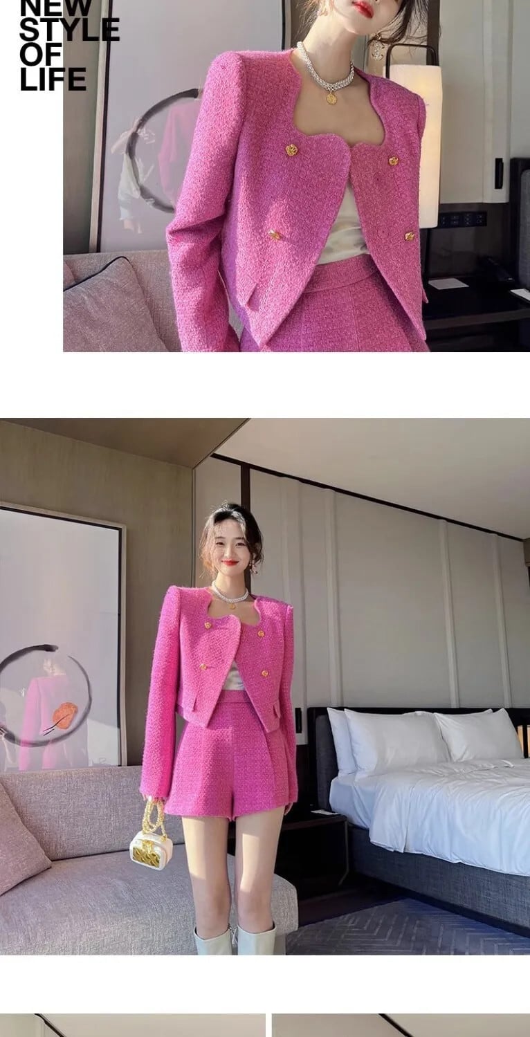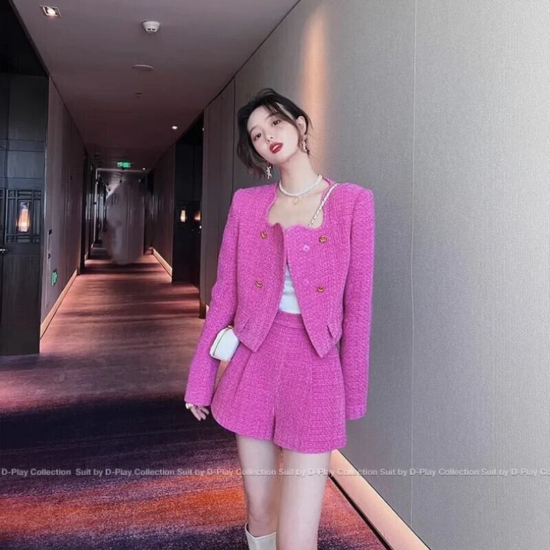 甘いホットガールスーツ秋と冬スクエアカラー長袖ジャケットウエストショーツ 2 点セット ロング 大人ガーリー スウィート キュート カジュアル オータム 秋物 ウィンター 冬物 ブルマー スクウェア