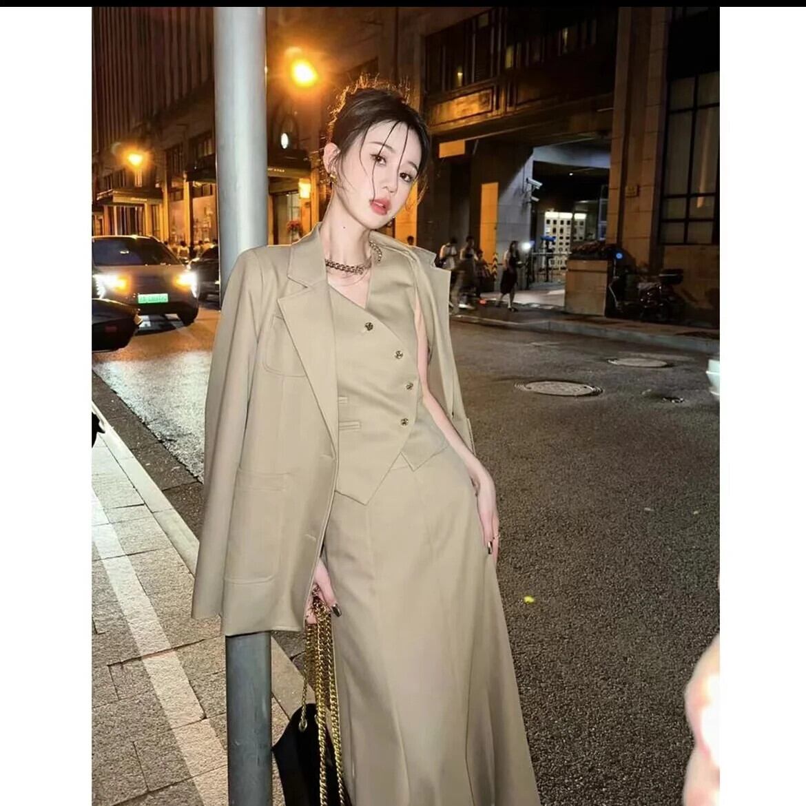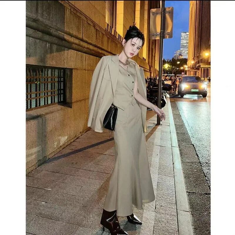 オフィスレディスーツ レディース 春 テーラードコート Vネック ベスト ウエストマーメイド ロングスカート 3点セット レッド スプリング 春物 会社 学校 通勤や通学にも
