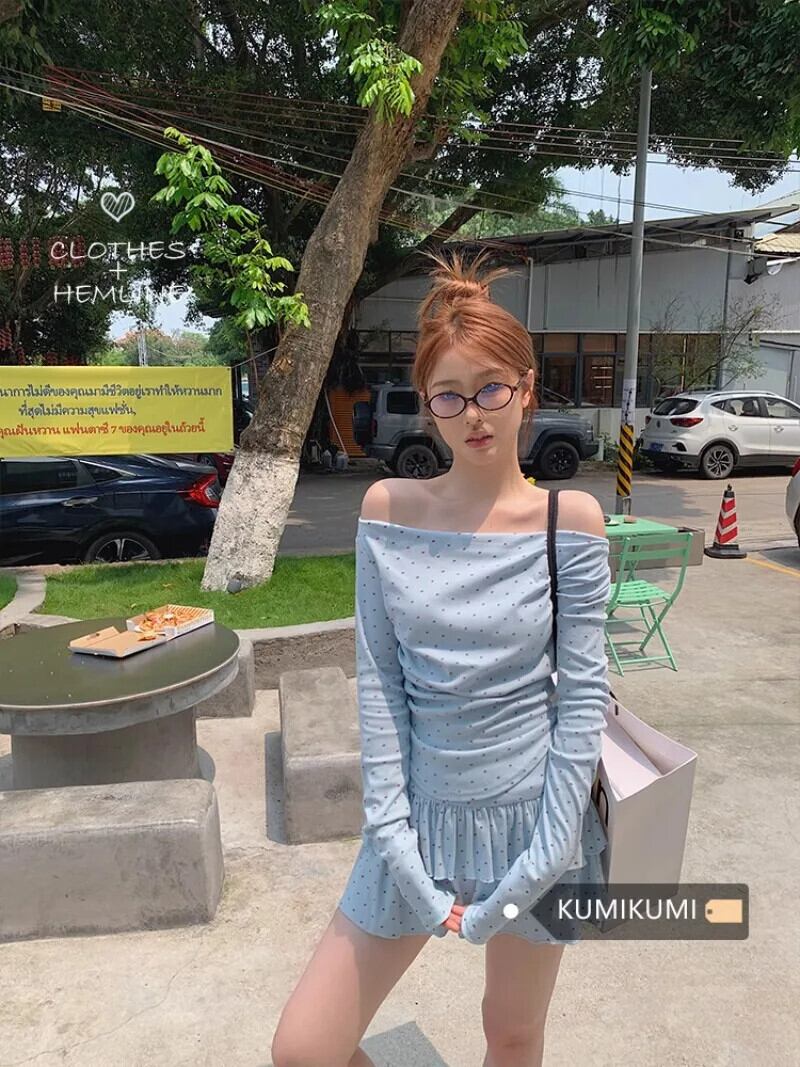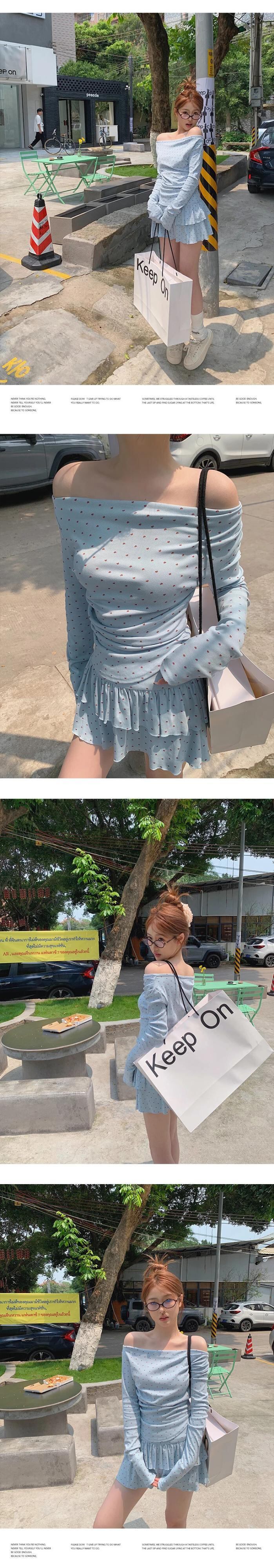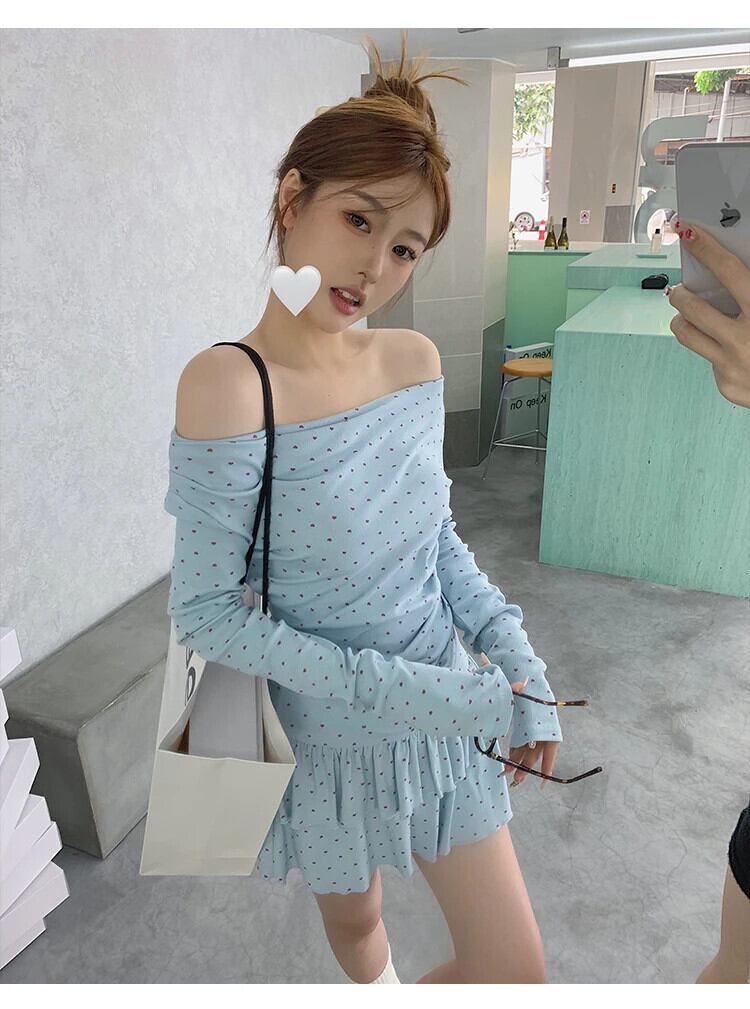 甘いホットガールスーツ春夏オフショルダードット Tシャツウエストミニスカート 2 点セット 大人ガーリー スウィート キュート カジュアル スプリング 春物 サマー 夏物