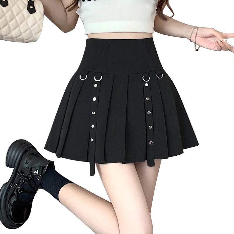 甘いホットガール黒プリーツスカート春夏ウエスト A ラインショートスカート ブラック 大人ガーリー スウィート キュート カジュアル スプリング 春物 サマー 夏物 Aライン