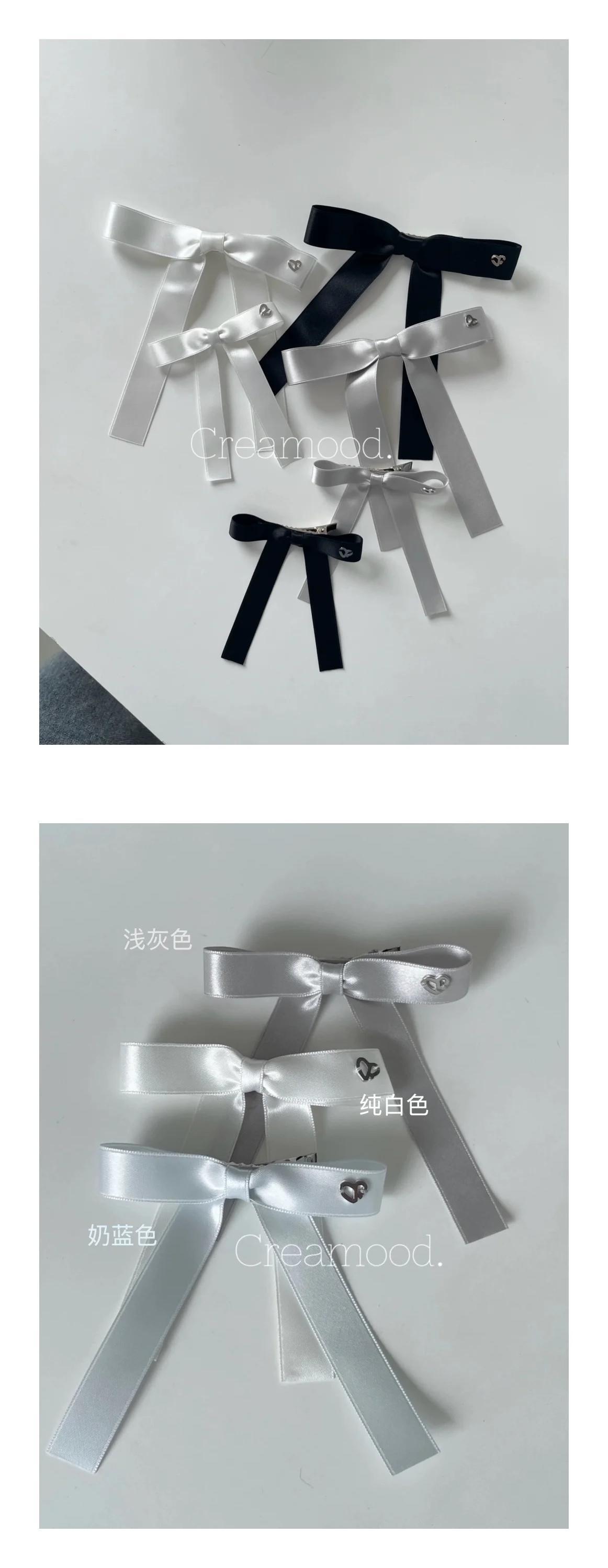 甘いホットガール黒と白グレーリボン弓カモノハシクリップ春夏かわいいヘアクリップトレンディアクセサリー ホワイト ブラック 大人ガーリー スウィート キュート カジュアル スプリング 春物 サマー 夏物