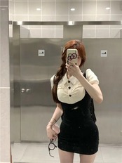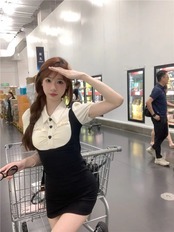 甘いホットガール純粋セクシーフェイクツーピースポロネックドレス夏スリムフィットラップヒップショートドレス 大人ガーリー スウィート キュート カジュアル サマー 夏物 Oネック ピュア