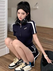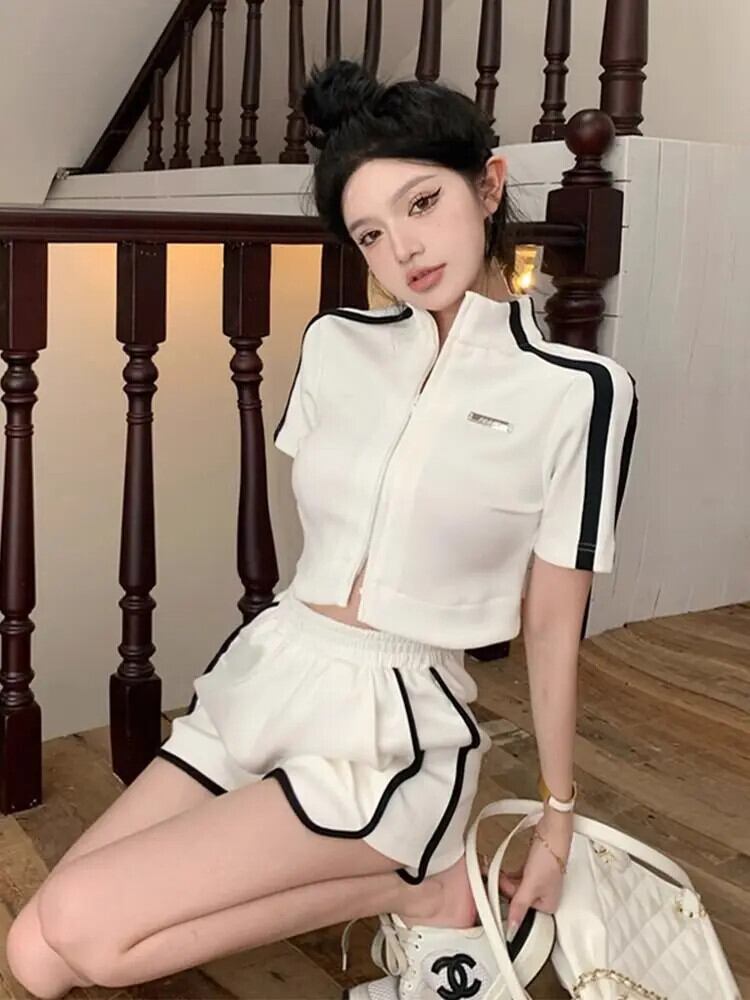 Sweet Girl スーツ レディース 夏 スプライス 半袖 Tシャツ ウエスト スポーツ ショーツ 2点セット 大人ガーリー スウィート キュート カジュアル サマー 夏物 ブルマー