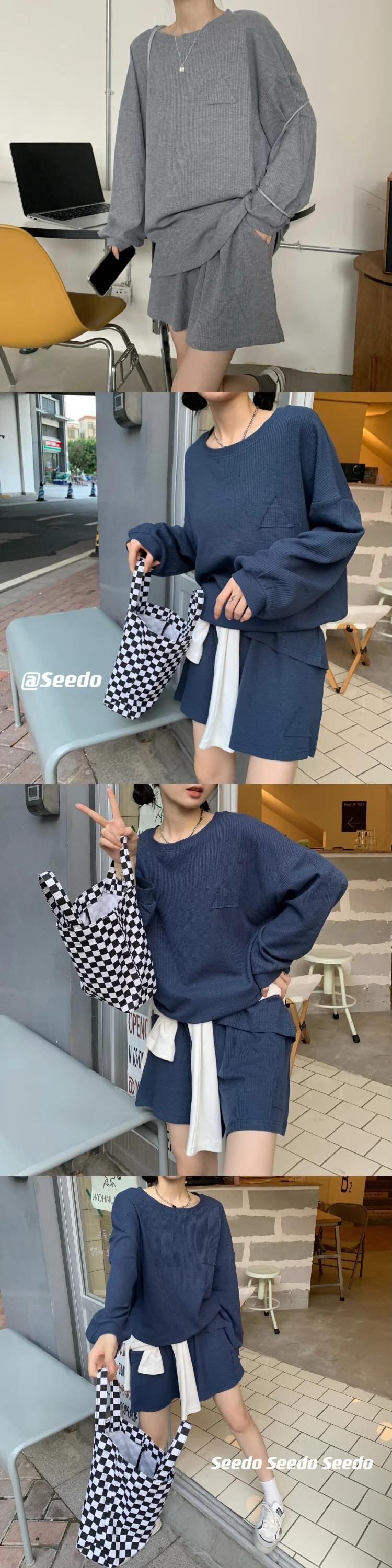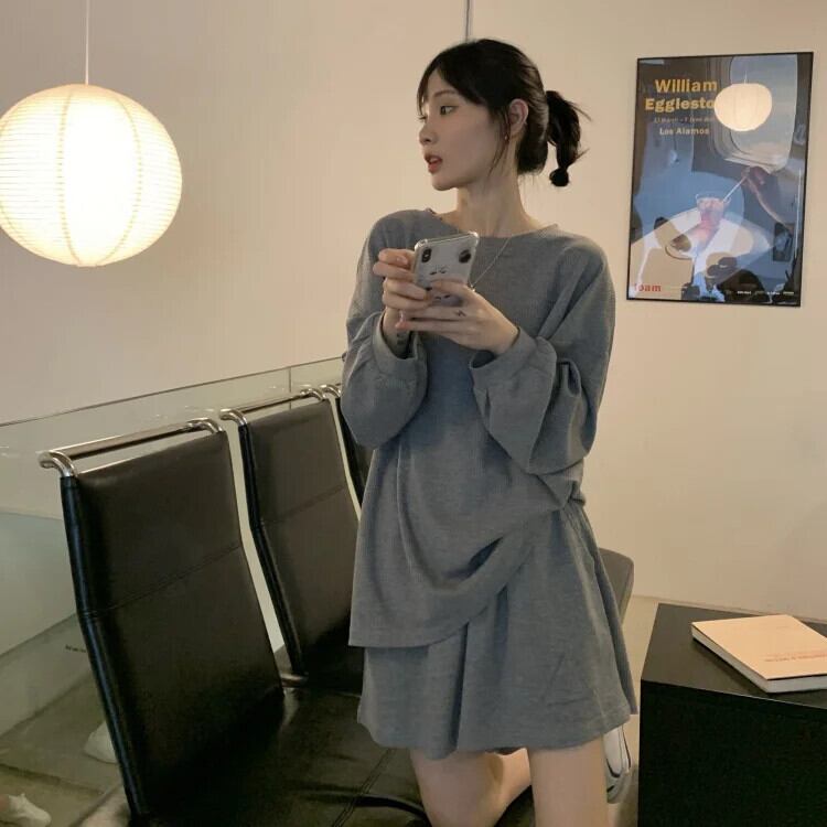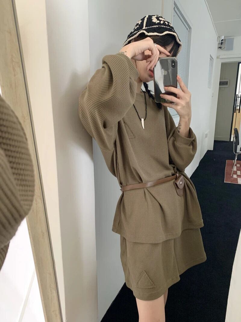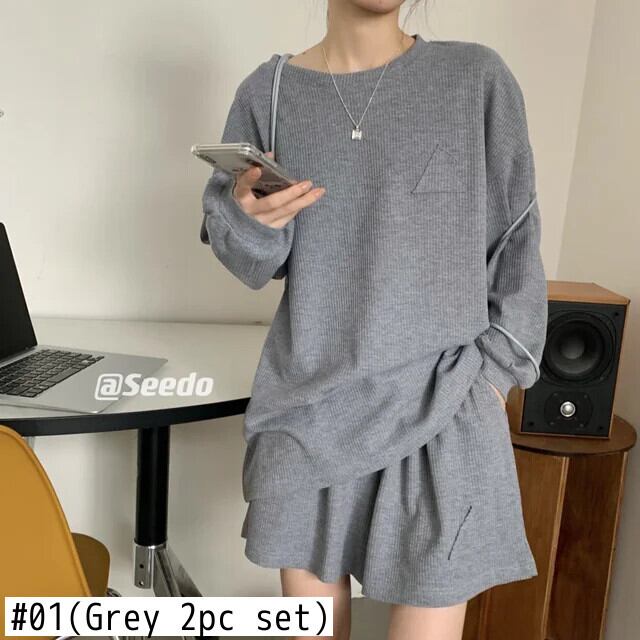Sweet Hot Girl スーツ レディース 春秋 長袖ニットトップ ワイドレッグショートパンツ 2点セット ロング 大人ガーリー スウィート キュート カジュアル スプリング 春物 オータム 秋物 ワイドパンツ