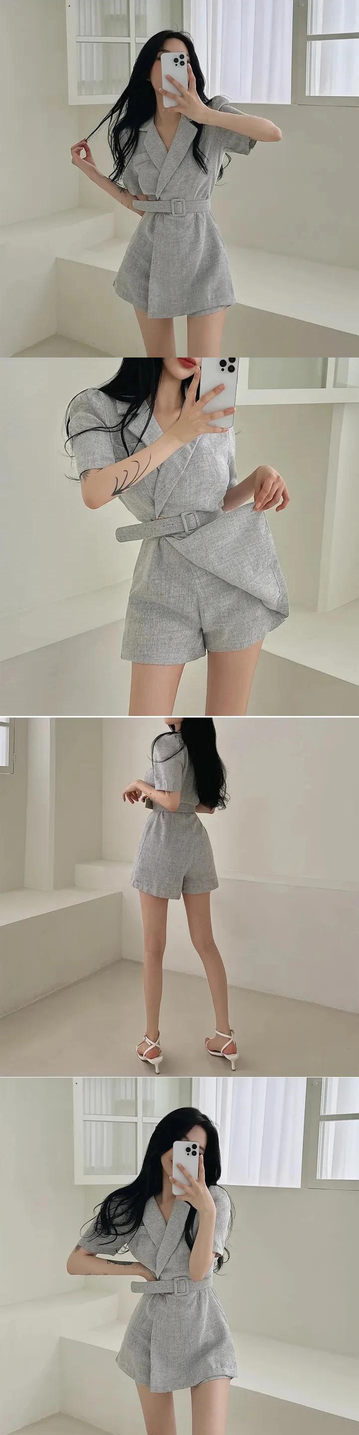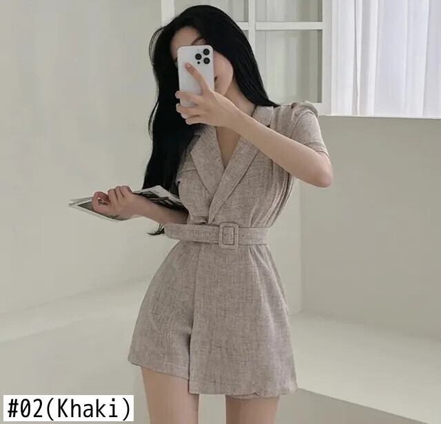 甘いホットガールシックジャンプスーツショーツ春/夏ターンダウン襟スリムフィット半袖ジャンプスーツ 大人ガーリー スウィート キュート カジュアル スプリング 春物 サマー 夏物 ブルマー