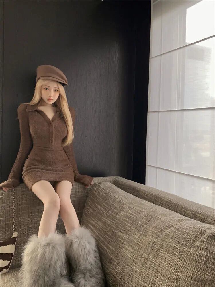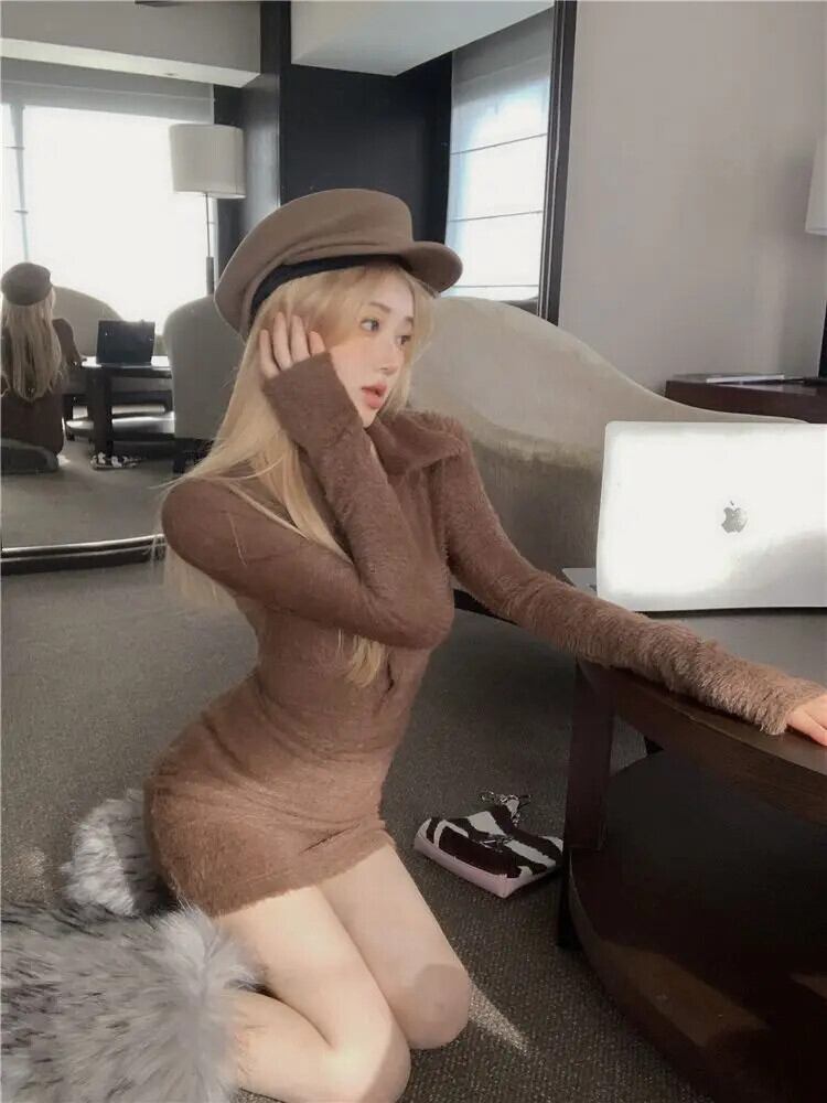 ホットガール純粋セクシーぬいぐるみニットドレス春長袖タイト肥厚スリムフィットラップヒップドレス ロング スプリング 春物 ピュア