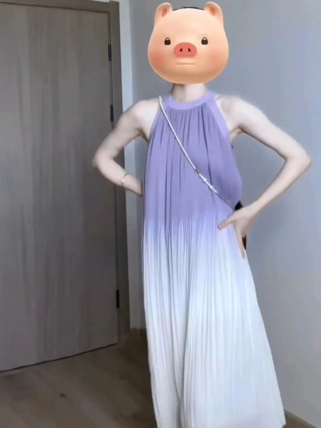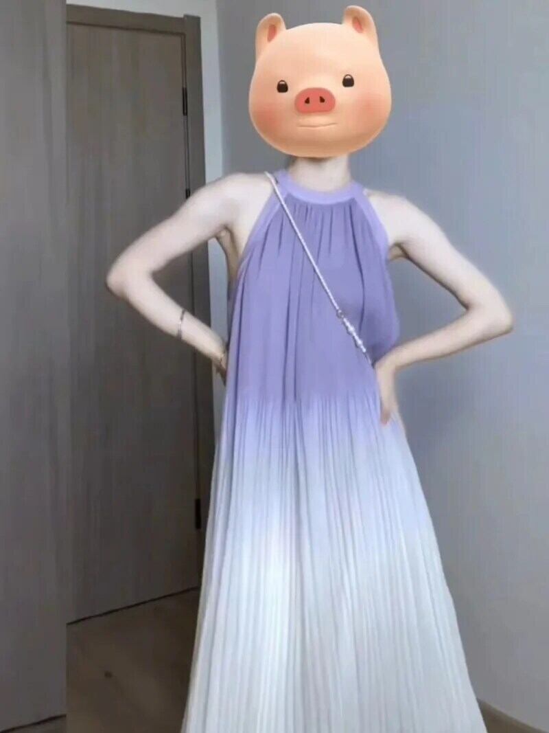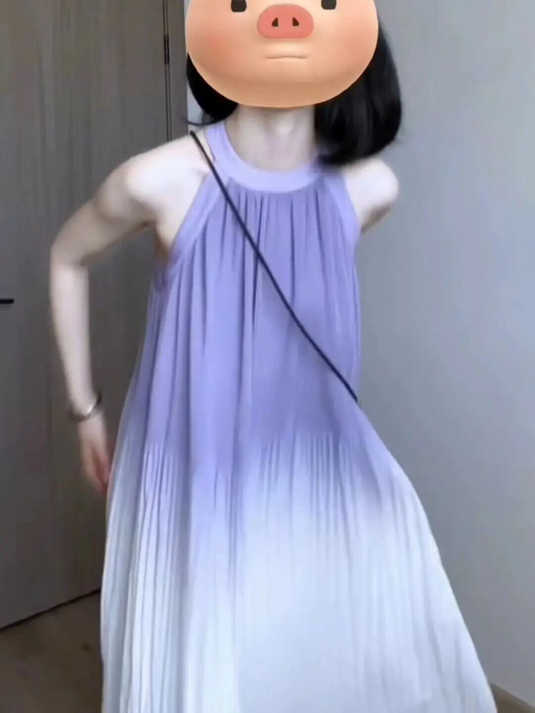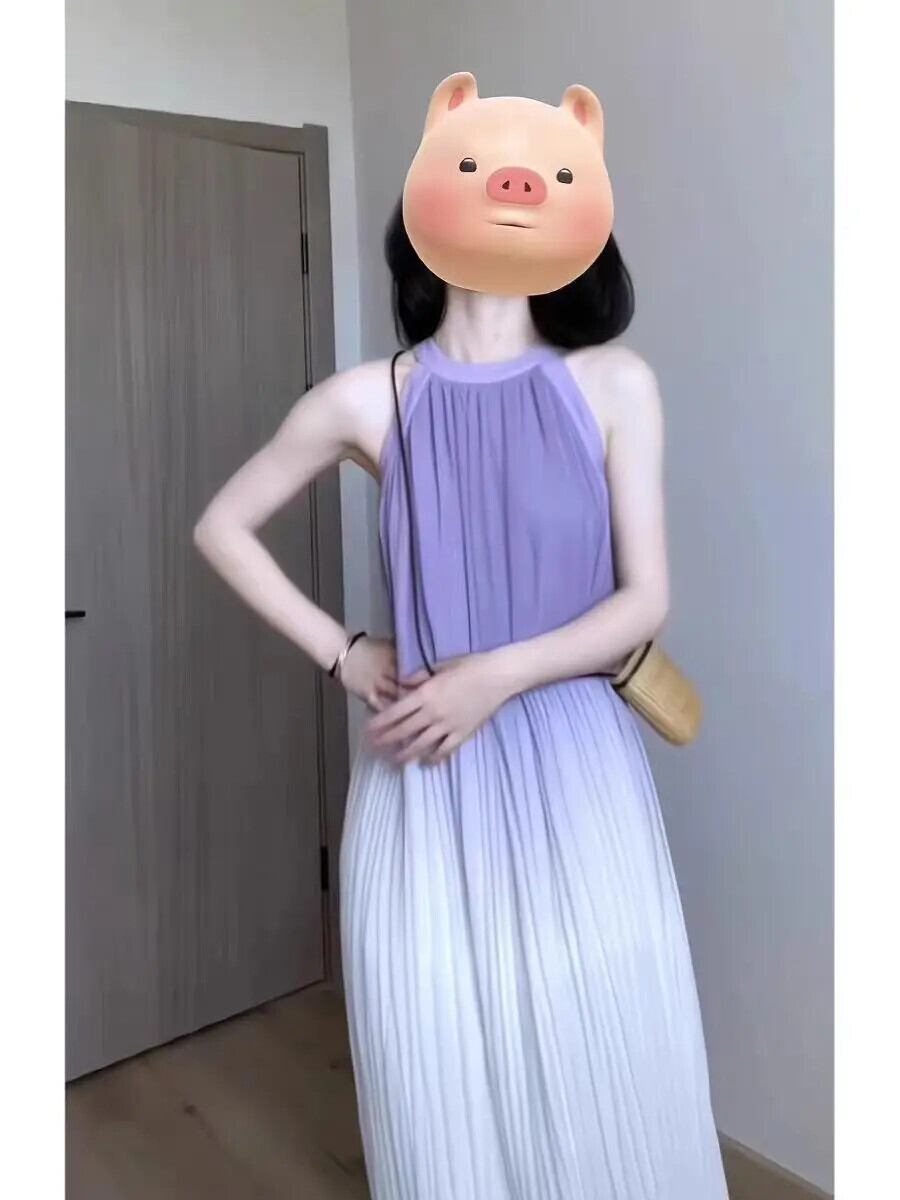 甘いホットガールネックホルター純粋セクシードレス春パープルグラデーションノースリーブプリーツロングドレス 大人ガーリー スウィート キュート カジュアル スプリング 春物 ピュア