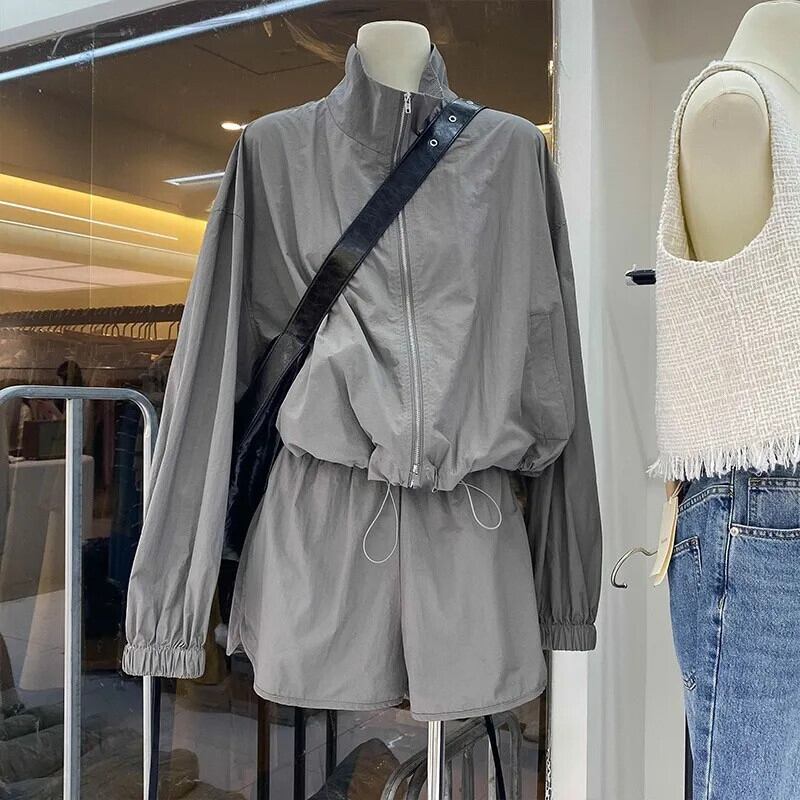 スイートホットガールスーツ夏ターンダウンカラー巾着コートワイドレッグショーツツーピースセット 大人ガーリー スウィート キュート カジュアル サマー 夏物 ブルマー ワイドパンツ