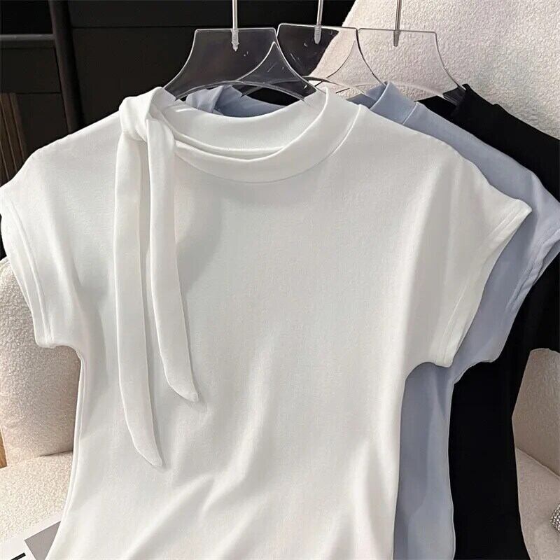 Sweet Hot Girl レースアップ ハーフネック Tシャツ レディース 夏 半袖 タイト フィット トップ 大人ガーリー スウィート キュート カジュアル サマー 夏物