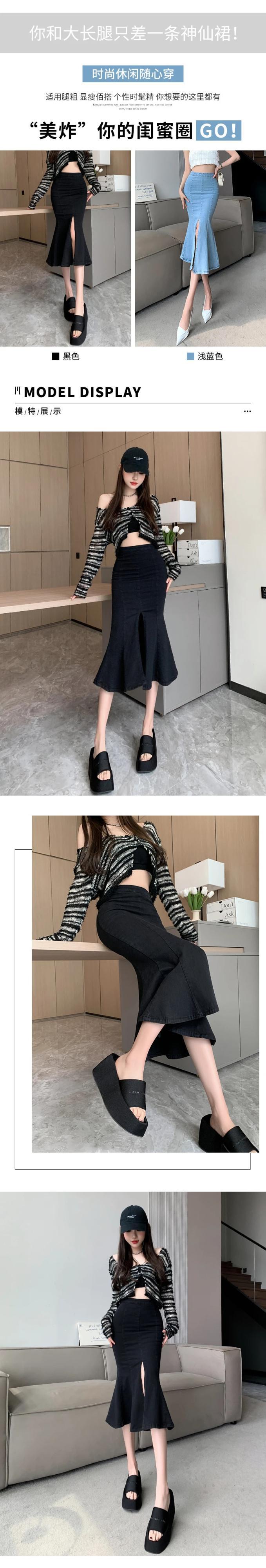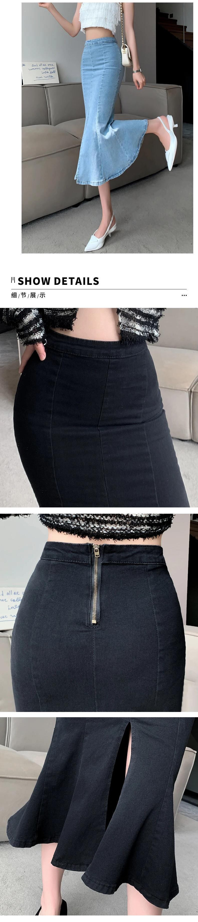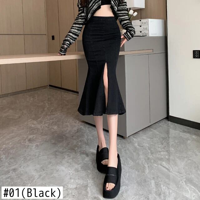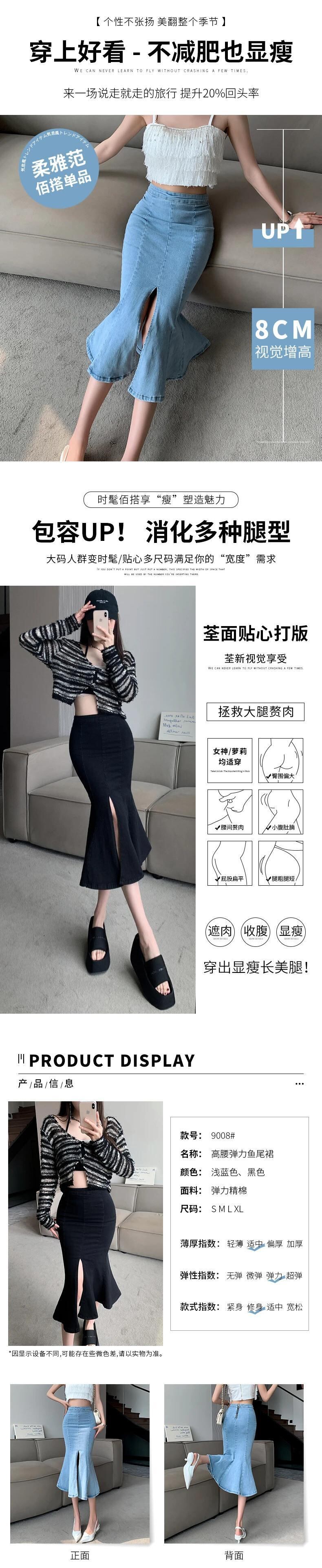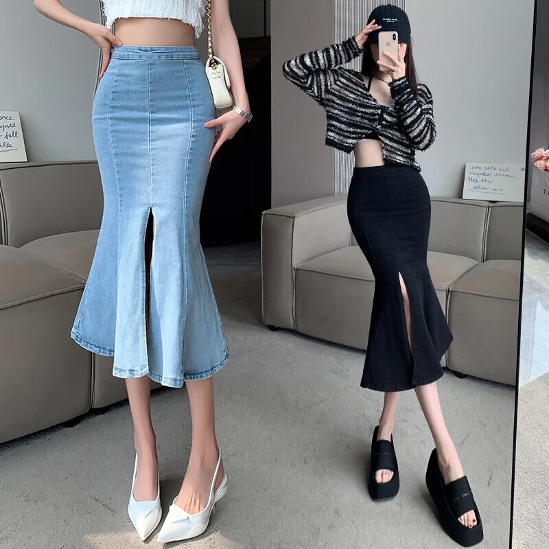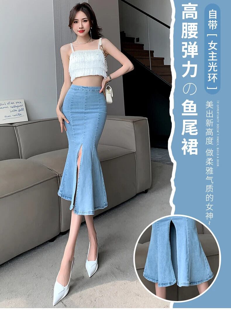 甘いホットガールウエストスリットデニムスカート春/夏弾性マーメイドラップヒップスカート エラスティック 伸縮 大人ガーリー スウィート キュート カジュアル スプリング 春物 サマー 夏物