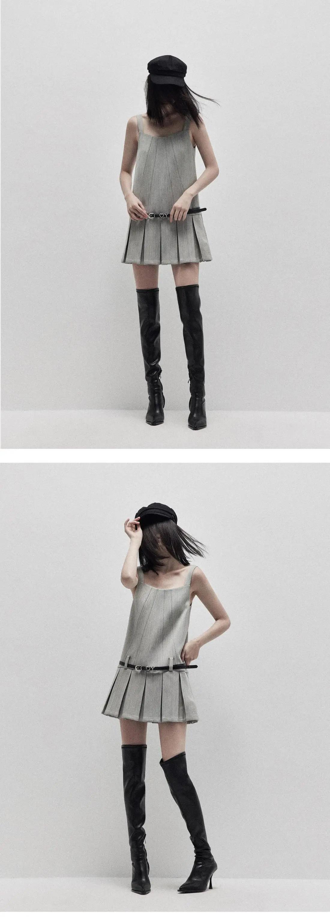 ese スイートホットガールストラップドレス夏ルーススクエア襟プリーツ A ラインショートドレス 大人ガーリー スウィート キュート カジュアル サマー 夏物 Aライン スクウェア