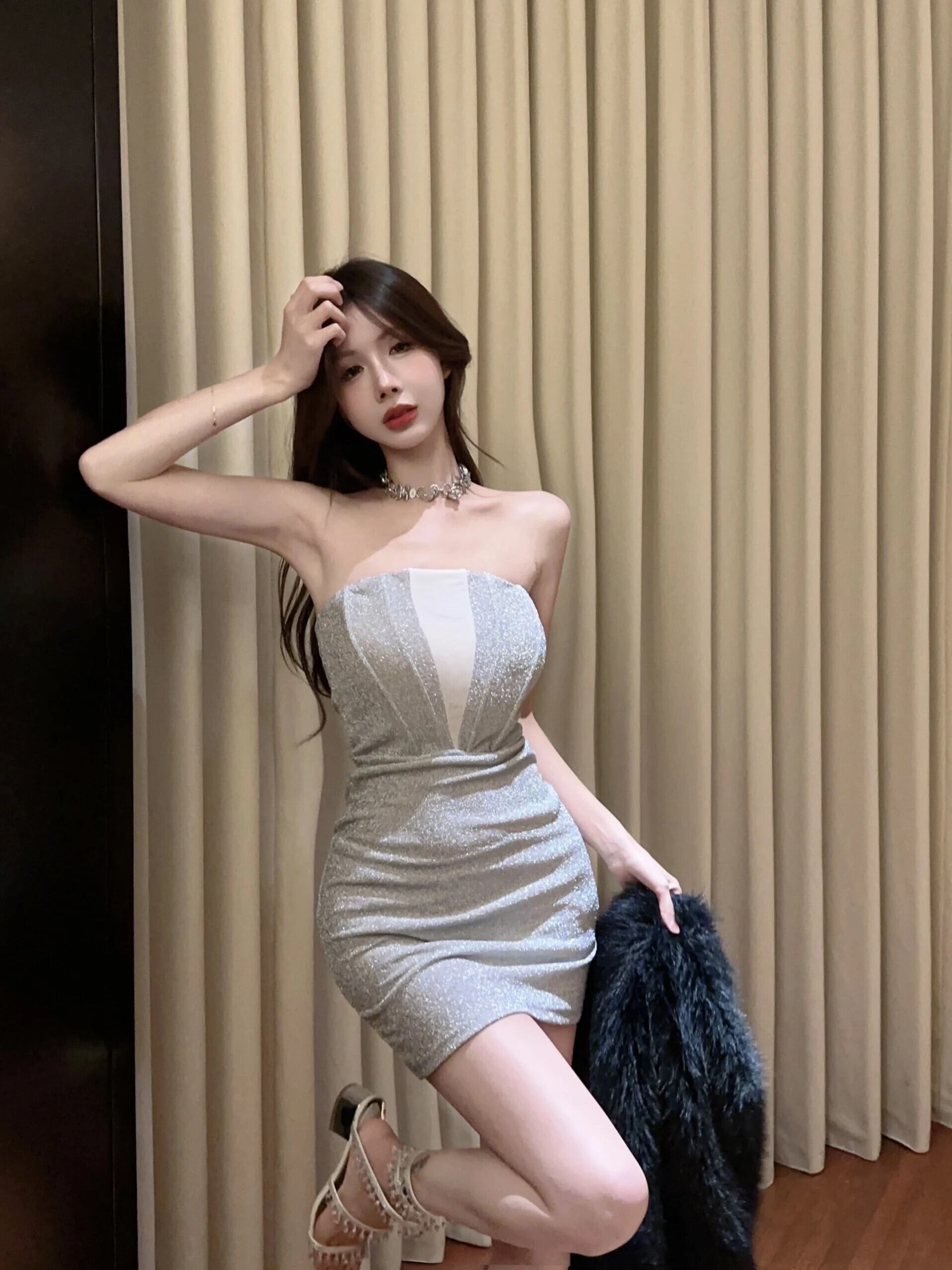 甘いホットガール純粋セクシースプライスストラップレスドレス春/夏スリムフィットヒップラップショートドレス 大人ガーリー スウィート キュート カジュアル スプリング 春物 サマー 夏物 ピュア