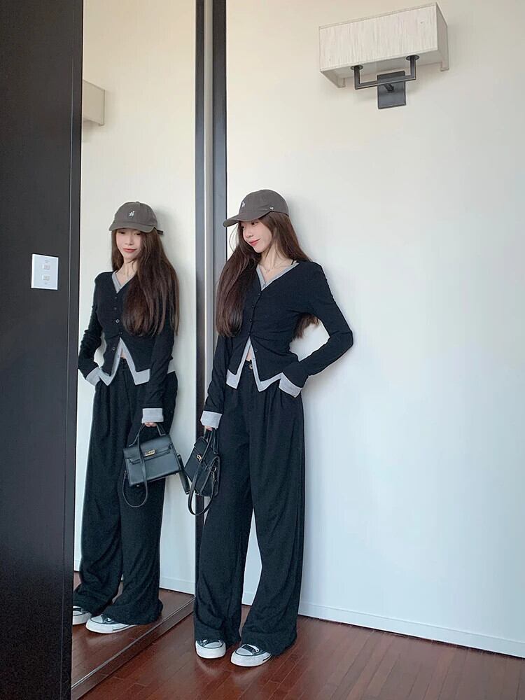スイートホットガールスーツ レディース 春 Vネック Tシャツ ウエストワイドレッグロングパンツ 2点セット 大人ガーリー スウィート キュート カジュアル スプリング 春物 ワイドパンツ