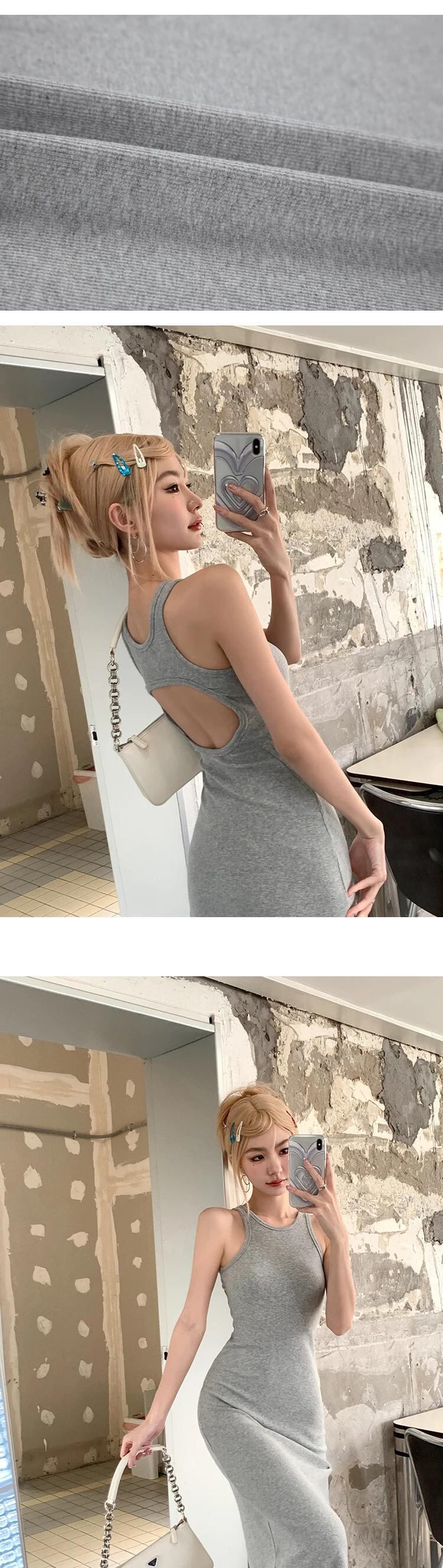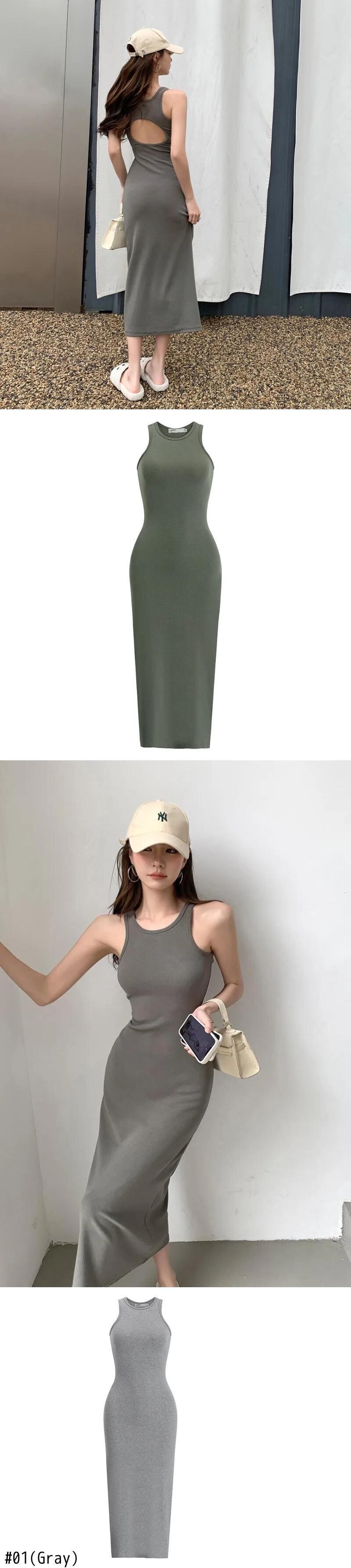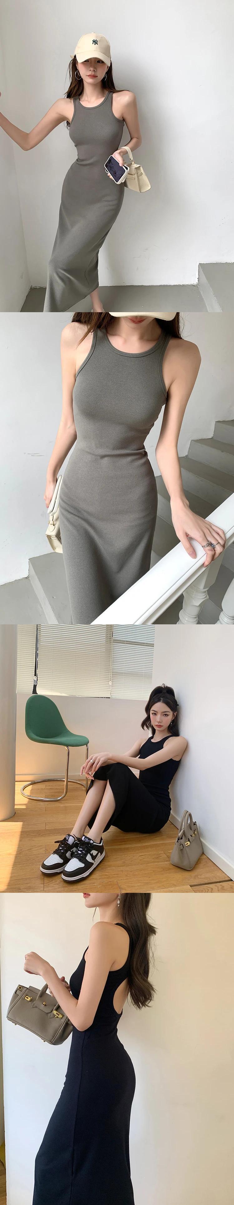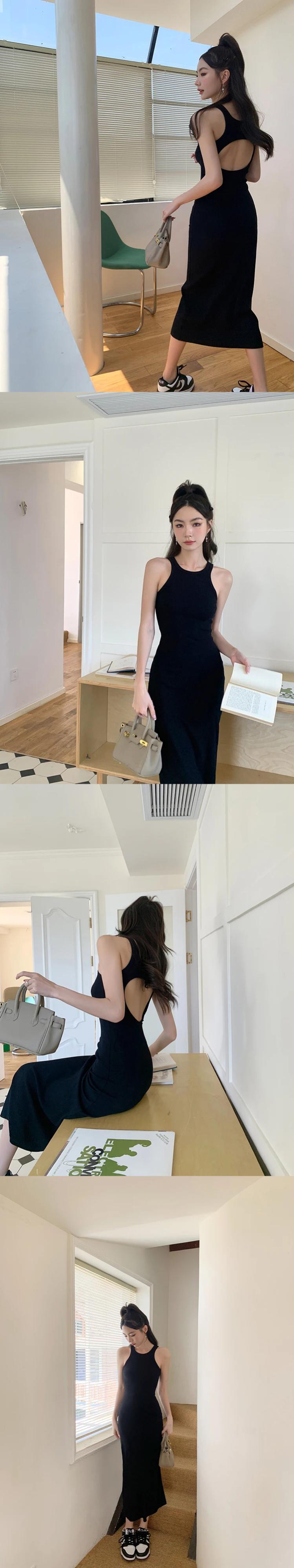 甘いホットガール背中開いたセクシーお尻ラップスリムフィットドレス夏 O ネックノースリーブミッドレングスドレス 大人ガーリー スウィート キュート カジュアル サマー 夏物 Oネック