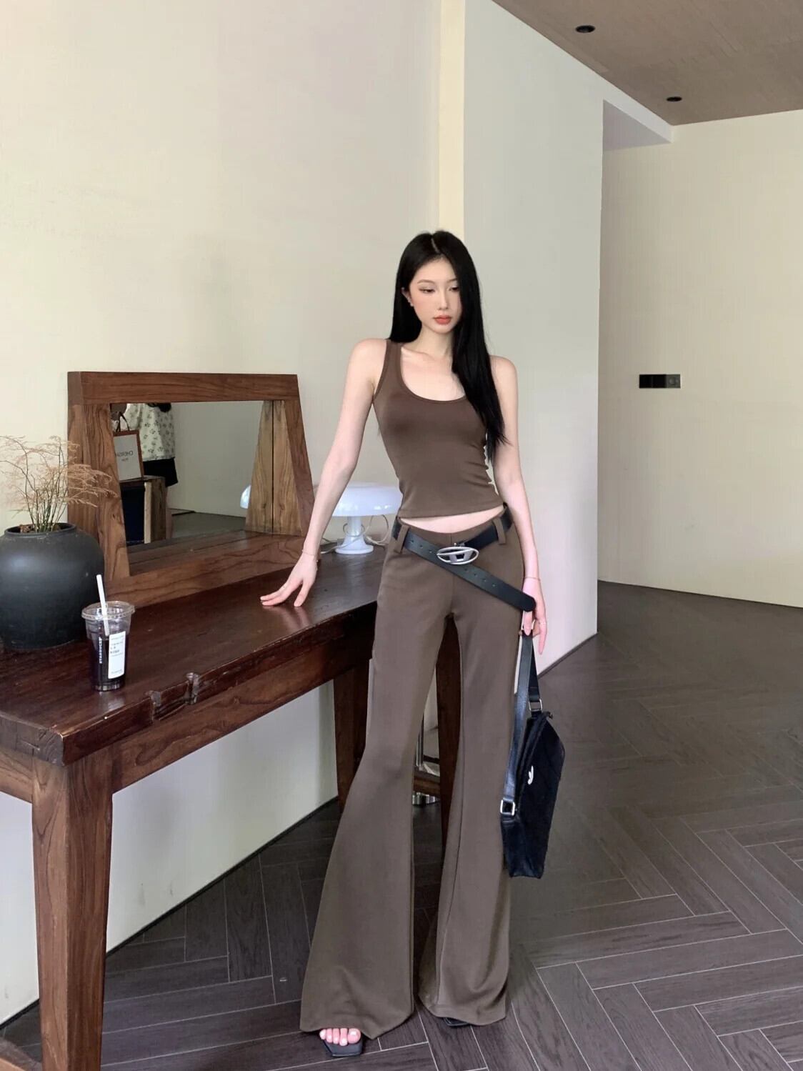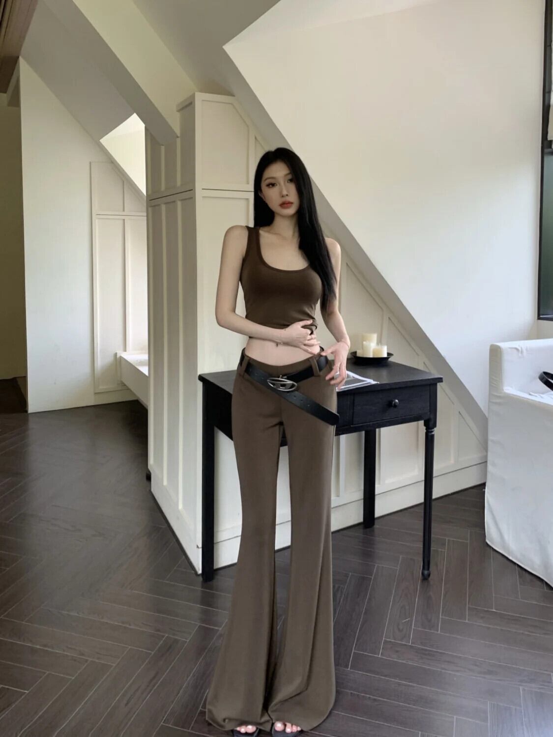 スイートホットガールスーツ夏スリムフィットキャミソールベストトップフレアロングパンツツーピースセット 大人ガーリー スウィート キュート カジュアル サマー 夏物