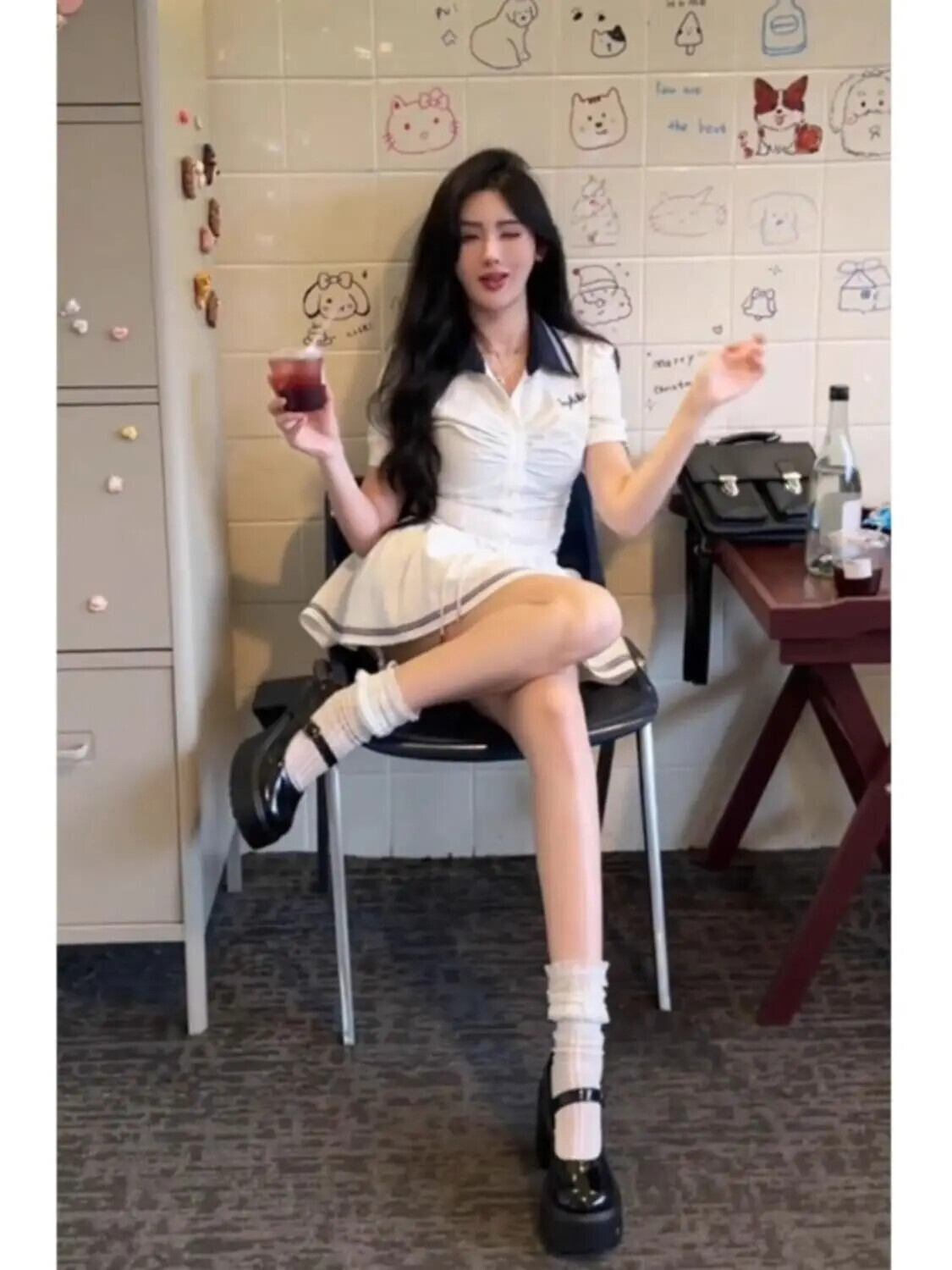 Sweet Girl プレッピー スタイル スーツ レディース 春夏 カラーコントラスト スリム フィット シャツ ウエスト A ライン スカート 2 点セット 大人ガーリー スウィート キュート カジュアル スプリング 春物 サマー 夏物 Aライン