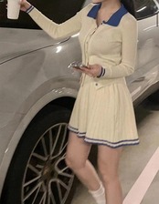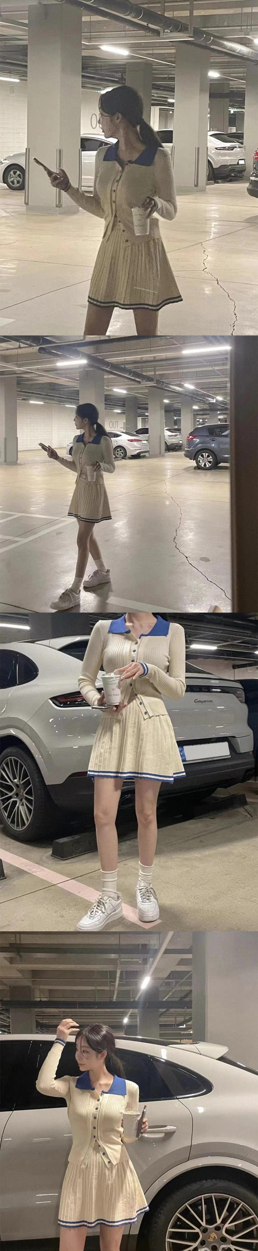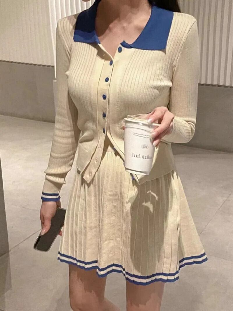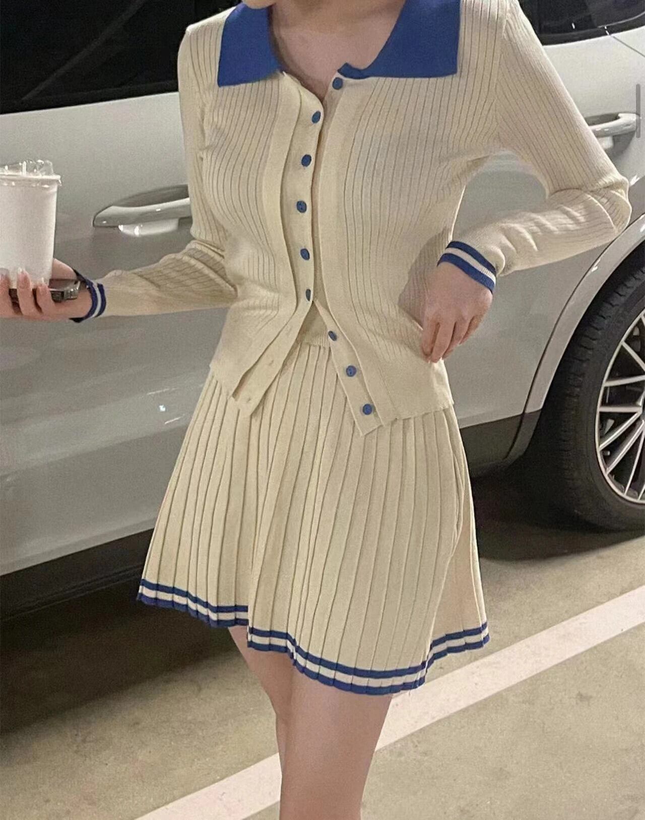 Sweet Hot Girl スーツ レディース 春夏 ターンダウンカラー ニットトップ ウエスト プリーツ スカート 2点セット 大人ガーリー スウィート キュート カジュアル スプリング 春物 サマー 夏物