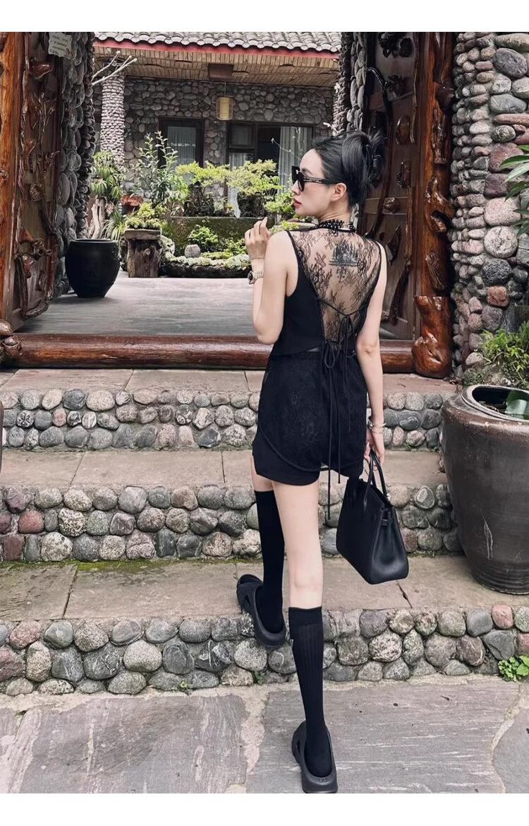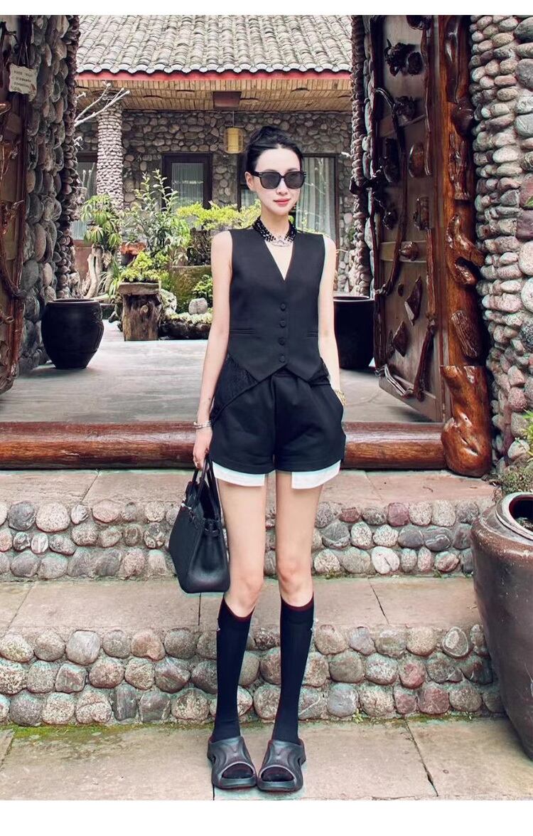 スイートホットガールスーツ夏スリムフィットレース V ネックベストウエストショーツ 2 点セット 大人ガーリー スウィート キュート カジュアル サマー 夏物 ブルマー Vネック