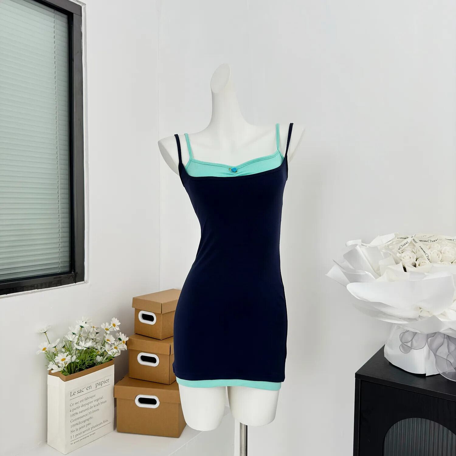 甘いホットガールフェイクツーピースストラップドレス春/夏純粋セクシースリムフィットストレッチショートドレス 大人ガーリー スウィート キュート カジュアル スプリング 春物 サマー 夏物 ピュア