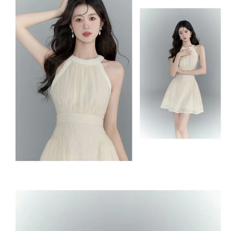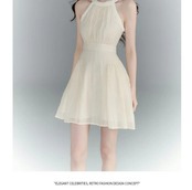 フレンチスイートホットガールホルターネックドレス夏休みスタイルレースウエストAラインショートドレス 大人ガーリー スウィート キュート カジュアル サマー 夏物