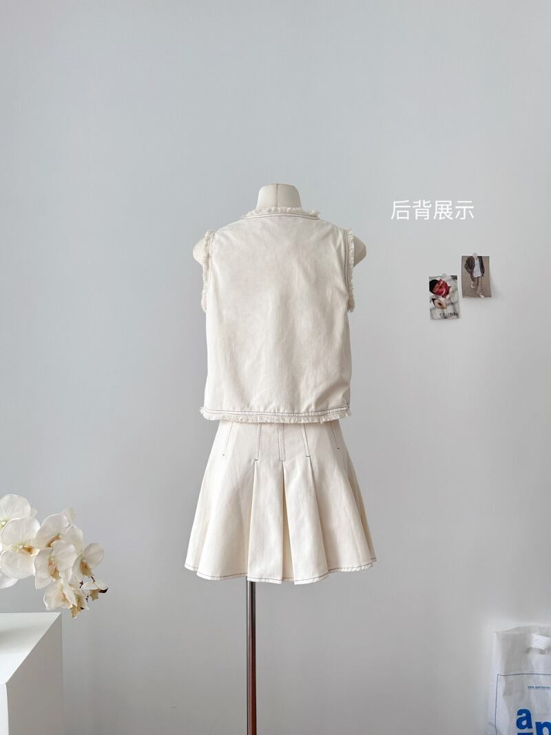 甘いホットガールスーツ夏 V ネックルーズベストトップショートプリーツ A ラインスカート 2 点セット 大人ガーリー スウィート キュート カジュアル サマー 夏物 Vネック Aライン