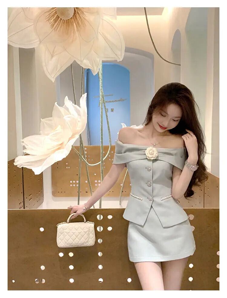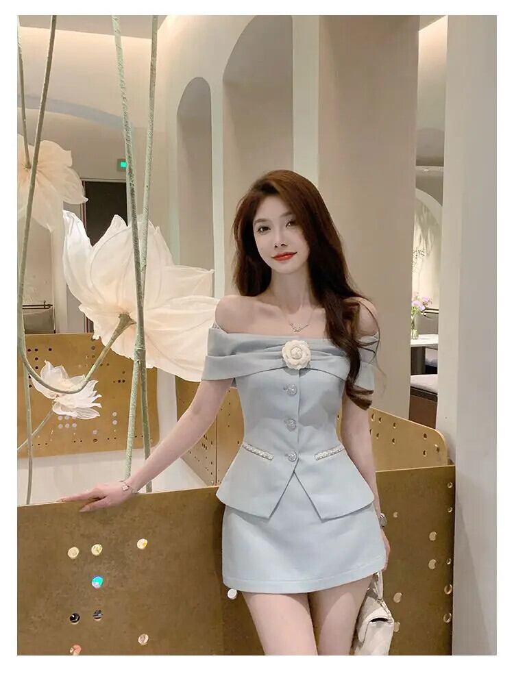 甘いホットガールスーツ夏立体花セクシートップスリムフィットミニスカートツーピースセット 大人ガーリー スウィート キュート カジュアル サマー 夏物 花柄