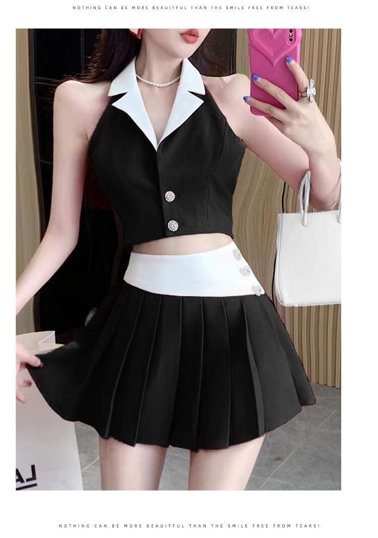 純粋セクシーホットガールスーツ夏ホルターネックベストウエスト A ラインミニスカート 2 点セット サマー 夏物 Aライン