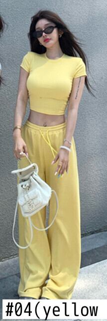 スイートホットガールスーツ夏スリムフィット O ネック半袖 Tシャツワイドレッグロングパンツ 2 点セット 大人ガーリー スウィート キュート カジュアル サマー 夏物 Oネック ワイドパンツ