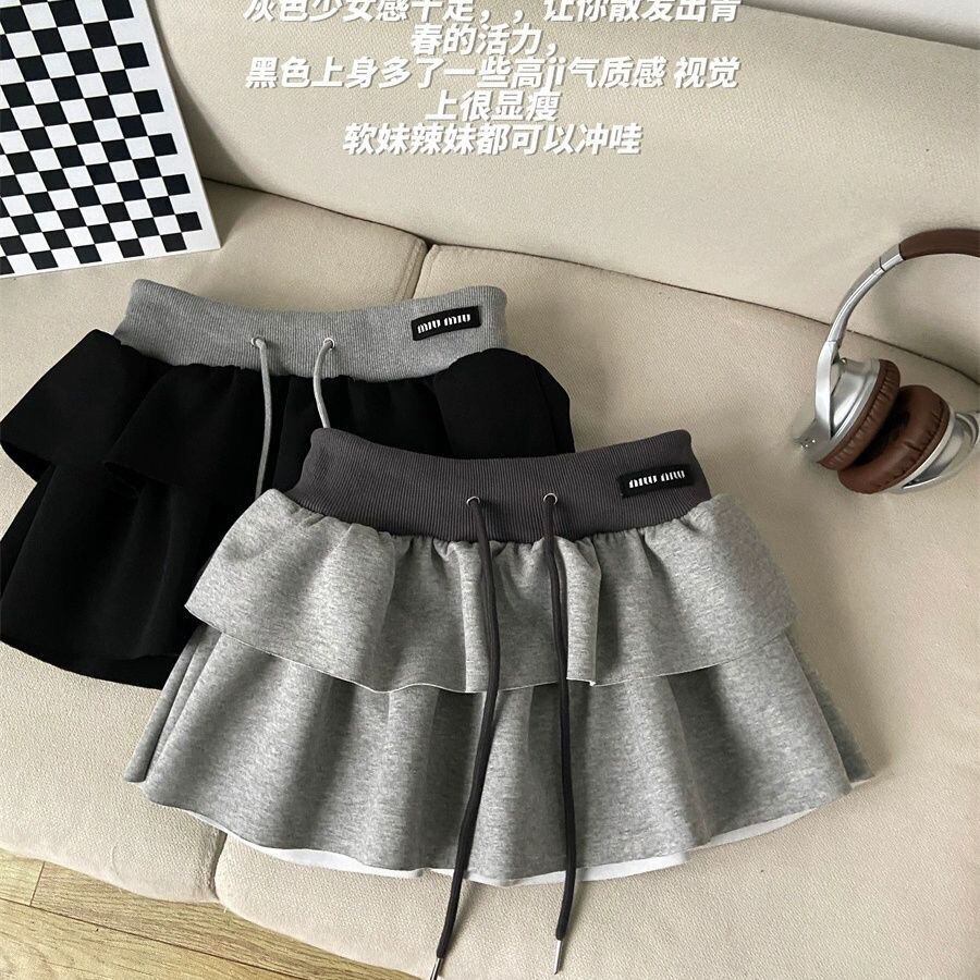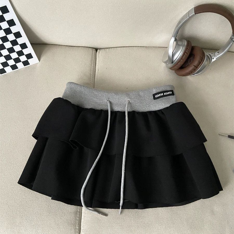 甘いホットガール巾着弾性ウエストスカート夏ウエスト A ラインふわふわショートスカート エラスティック 伸縮 大人ガーリー スウィート キュート カジュアル サマー 夏物 Aライン