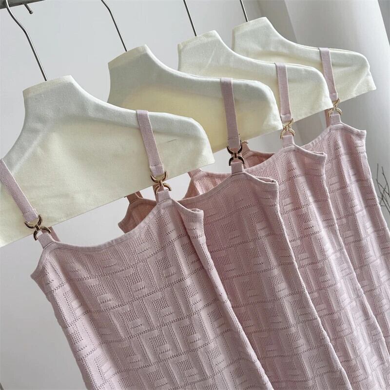 スタイル甘いホットガールピンクスリムフィットストラップロングドレス夏弾性金属バックルニットドレス エラスティック 伸縮 大人ガーリー スウィート キュート カジュアル サマー 夏物